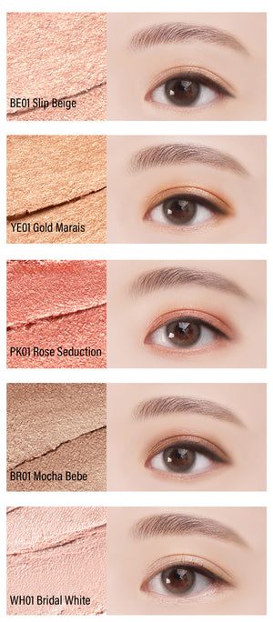 ¿Preocupada por que el color se desvanezca o se mueva? Su textura se desliza con suavidad cremosa y se seca instantáneamente para fijarse. Disfruta de un brillo duradero sin manchas, pliegues o necesidad de retoques, garantizando un acabado limpio durante todo el día.