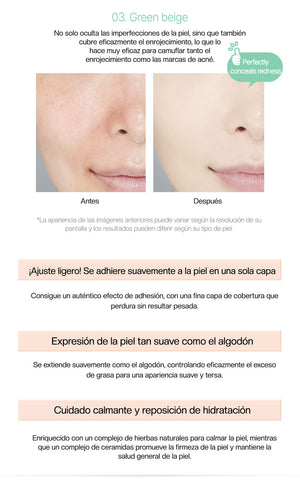 Acabado Mate Sedoso: Proporciona un acabado mate suave que controla el exceso de grasa y reduce el brillo, manteniendo la piel fresca todo el día.